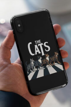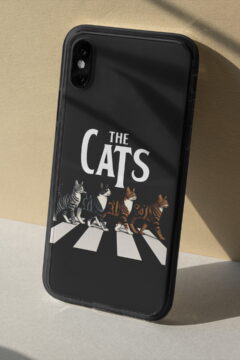 Vynikající ochranný obal pro mobilní telefony Apple iPhone, Samsung Galaxy, Google Pixel a Motorola Edge. Obrázkový motiv lehce paroduje ikonickou fotografii na titulní straně alba hudební skupiny The Beatles – Abbey Road ovšem v kočičí verzi. Kočkomilové si tento obal velice oblíbí.