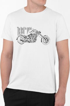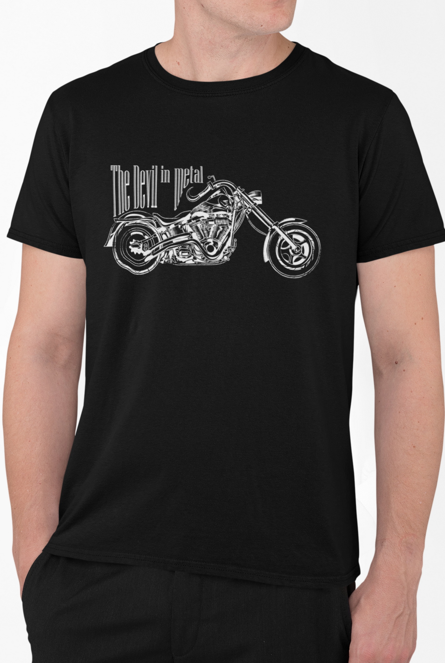 Pánské bavlněné tričko s potiskem, příjemné na nošení.  I v kovovém monstru s motorem a dvěma koly může být zakletý ďábel! Toto tričko s tématikou motorek je toho důkazem.