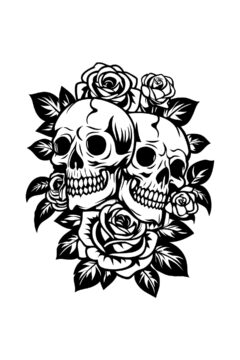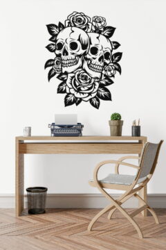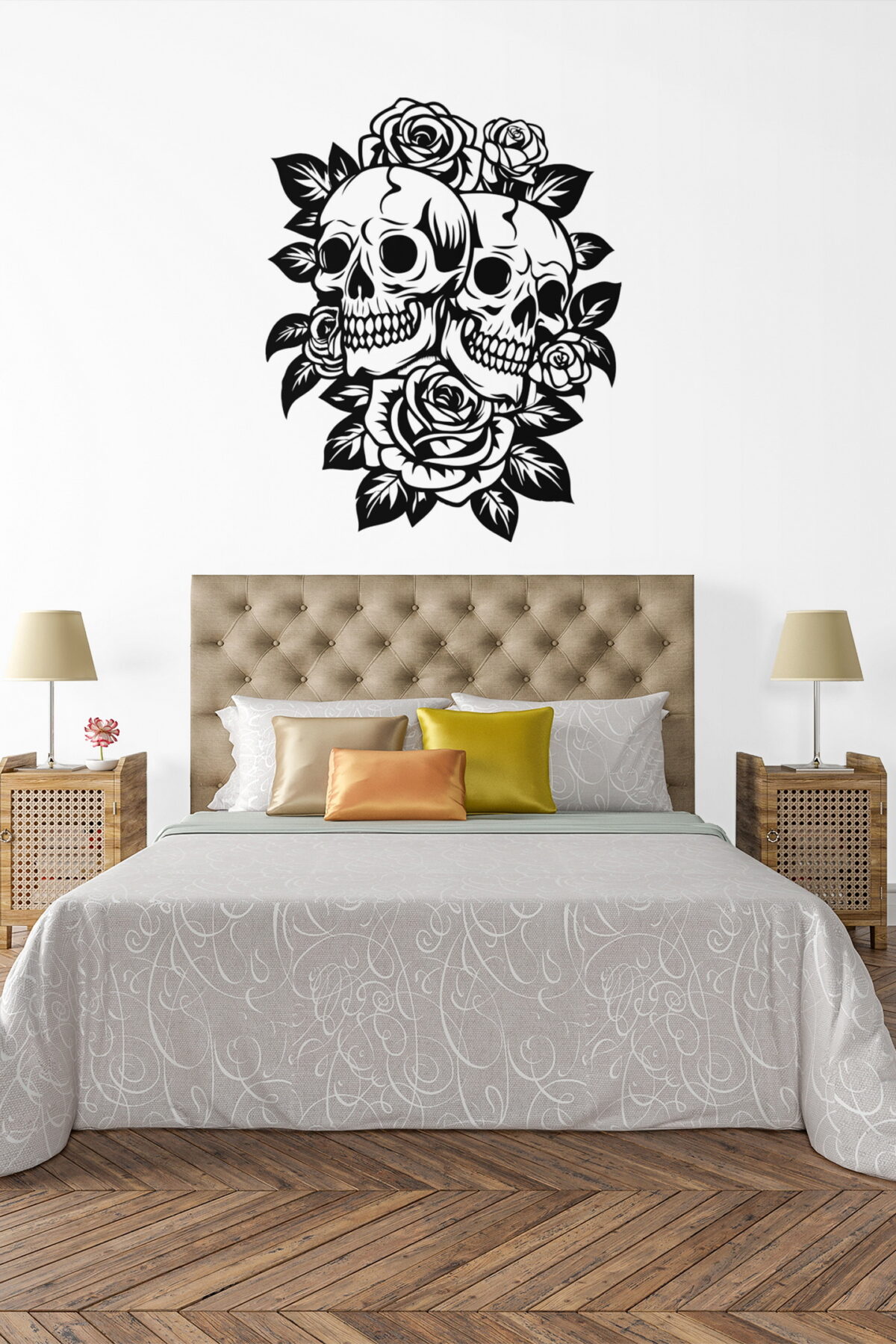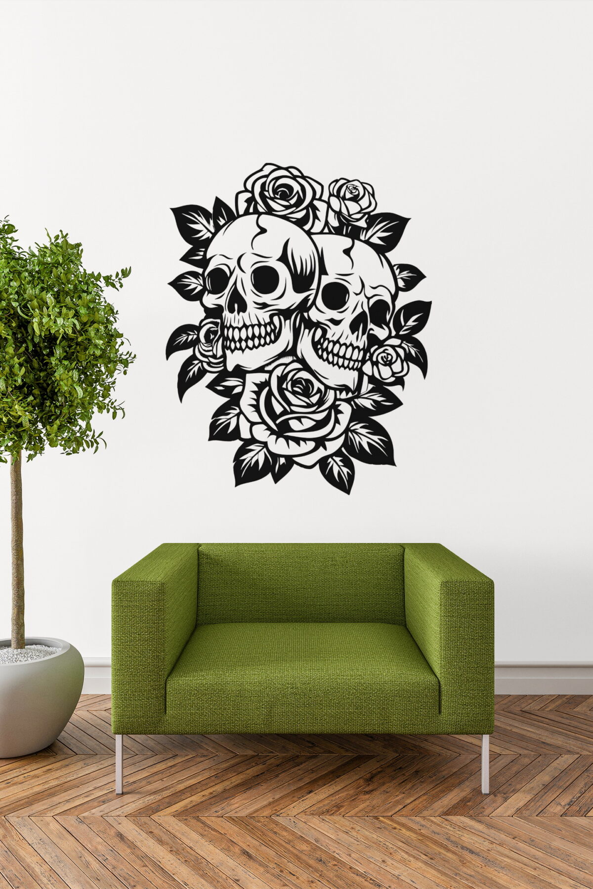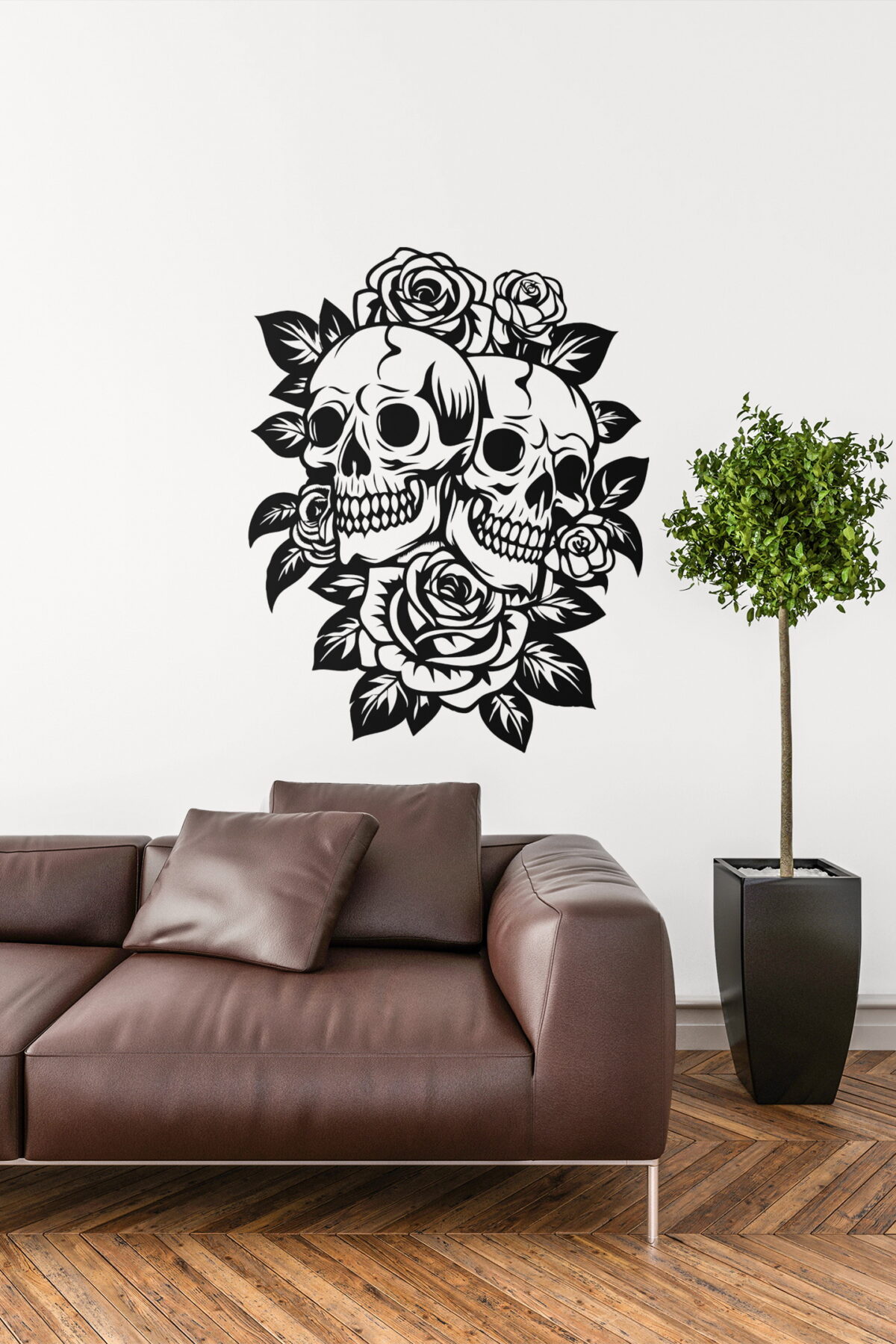 Halloweenské lebky s růžemi #1 | samolepka na zeď, různé rozměry