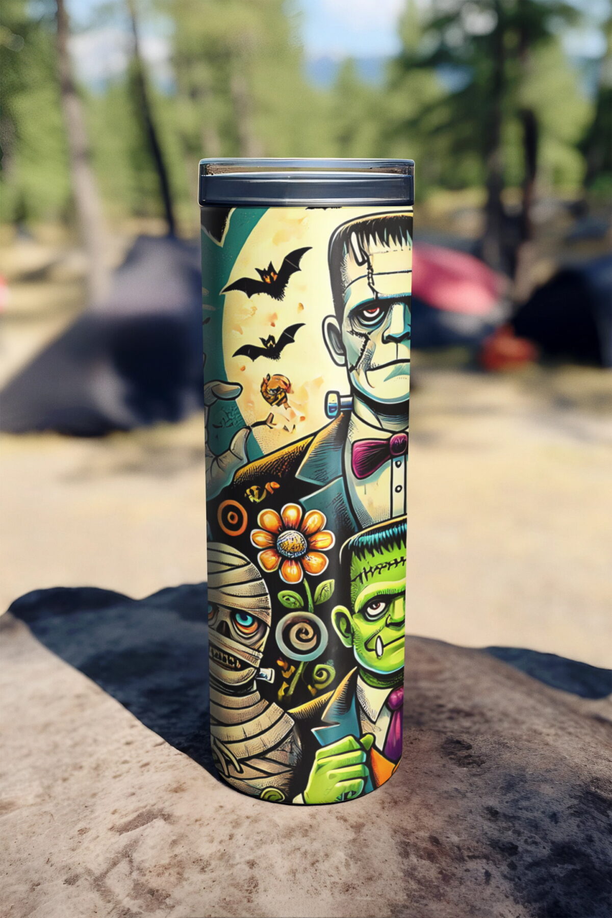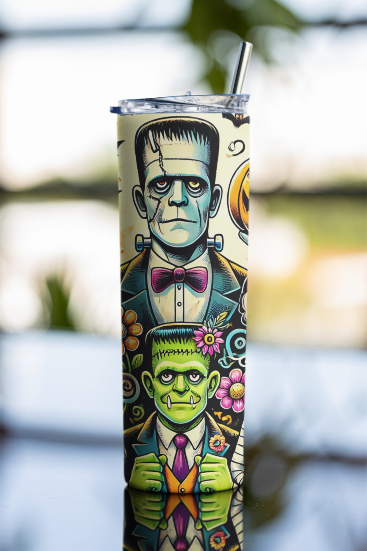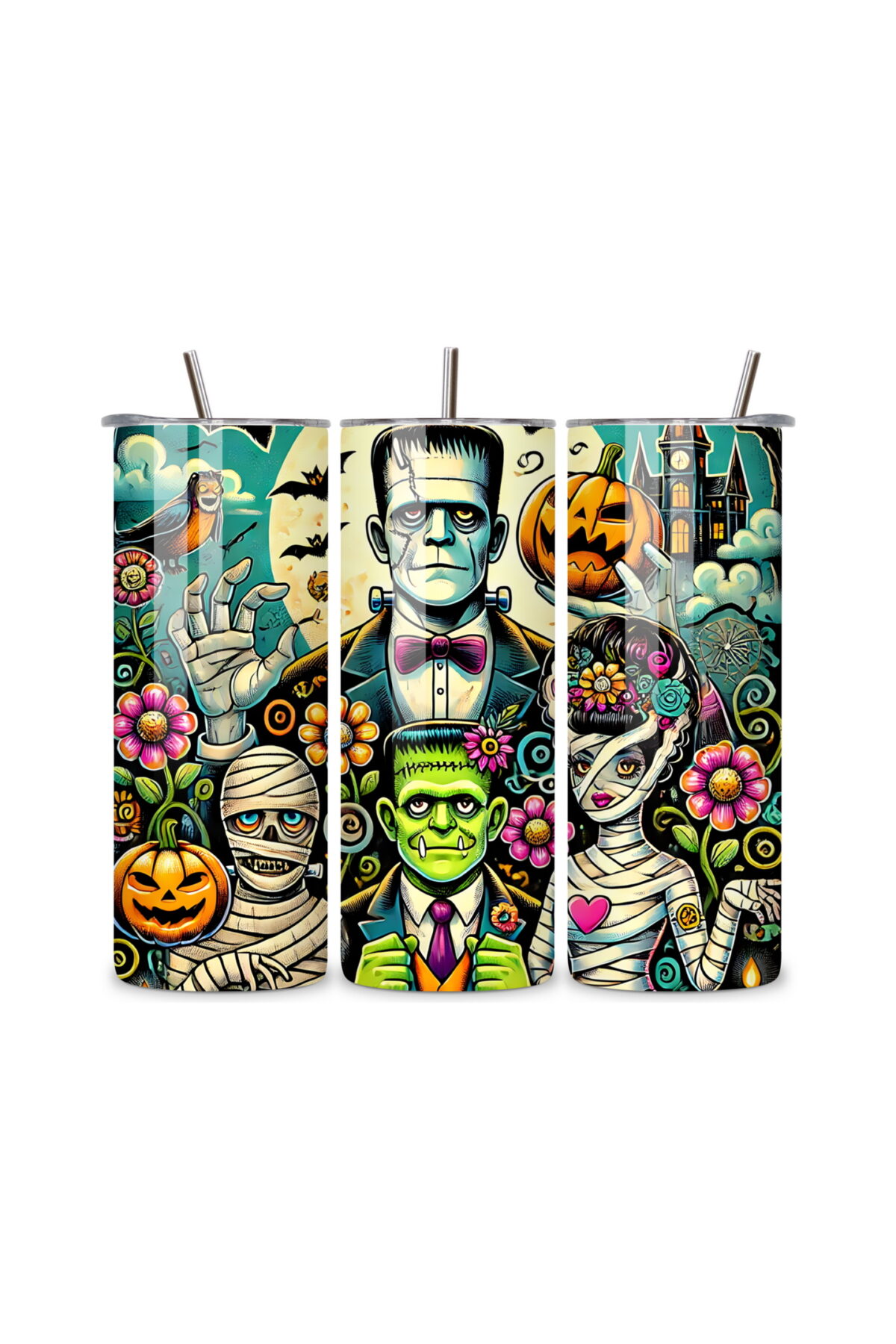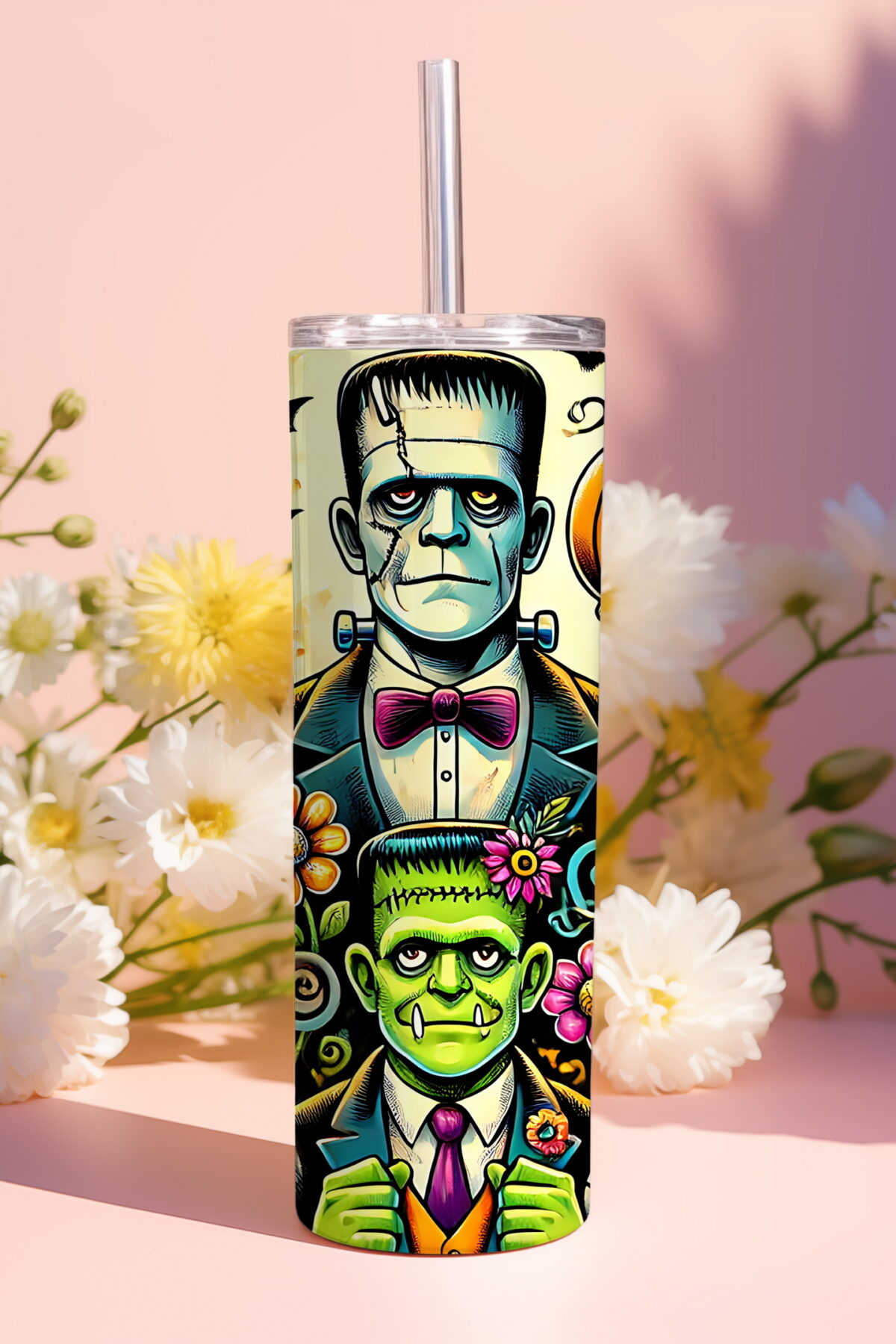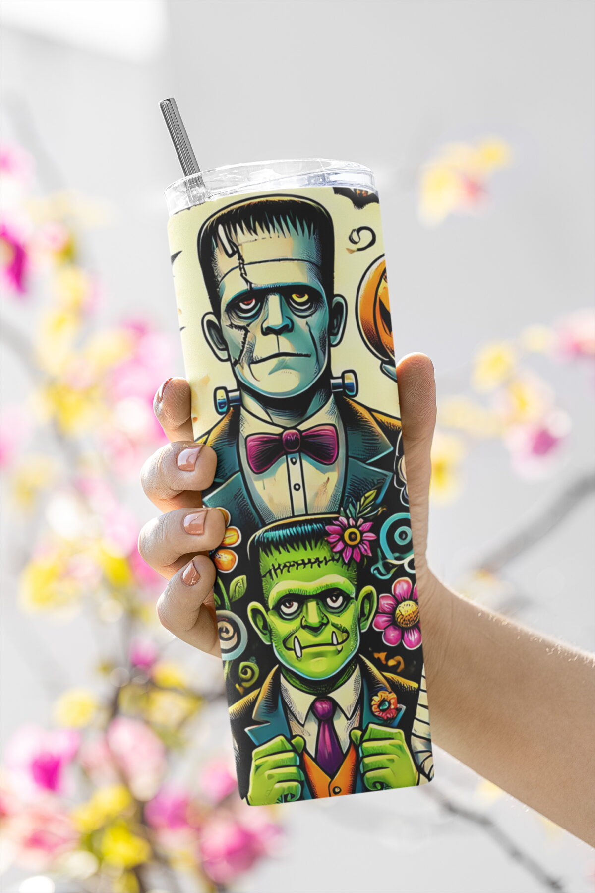 Halloweenské monstrum Frankie | nerezový termohrnek 600ml s kovovým brčkem