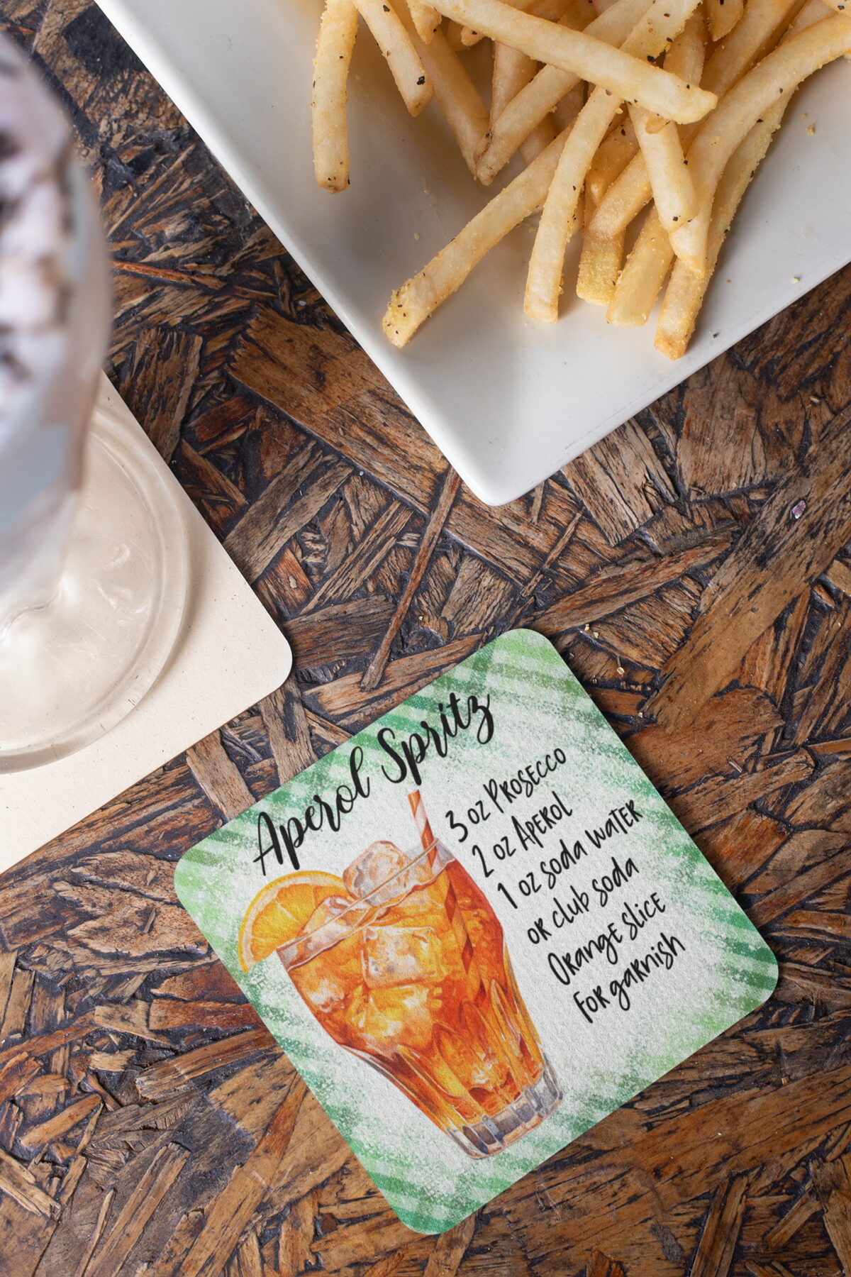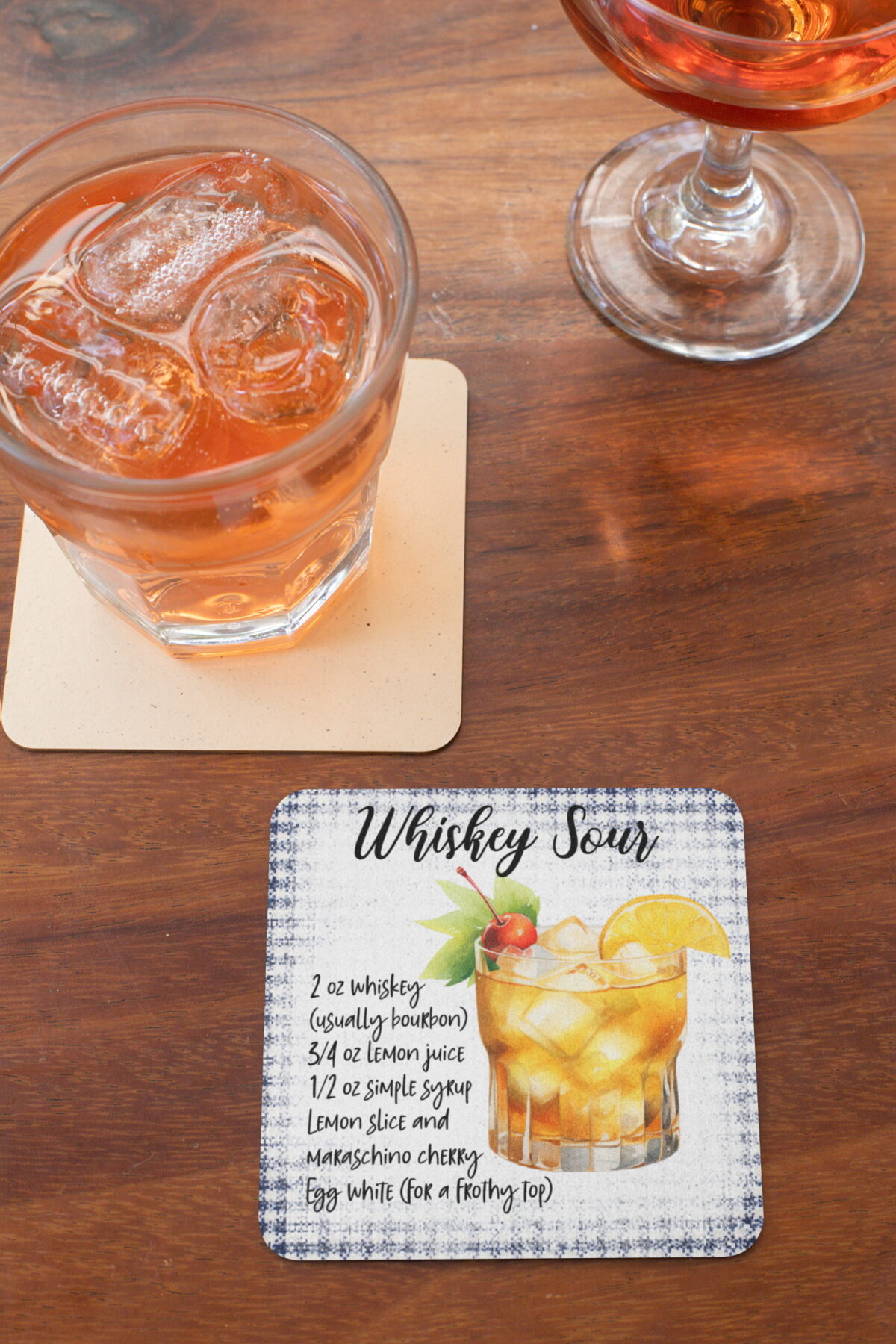 Užitečná sada 6 kusů podtácků pod hrnky nebo sklenice s recepty na skvělé míchané nápoje.