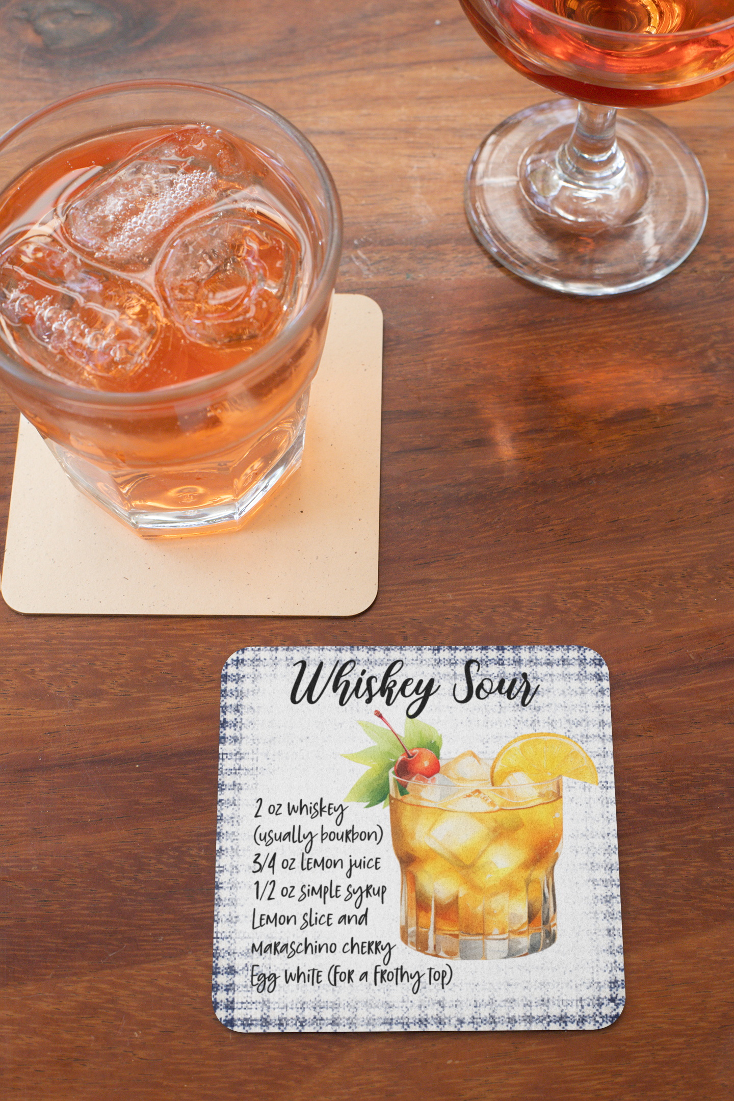 Koktejlové recepty #1 | podložka pod hrnek, sada 6 kusů