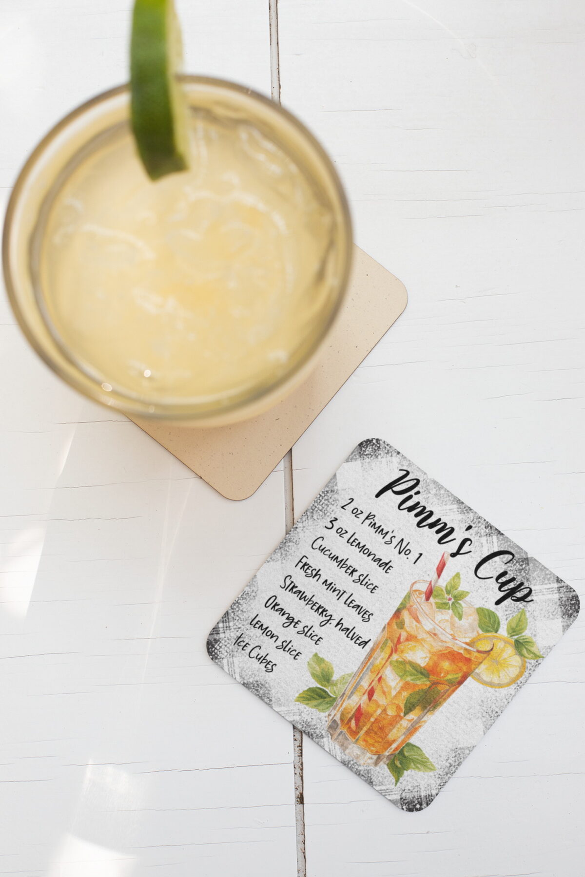 Užitečná sada 6 kusů podtácků pod hrnky nebo sklenice s recepty na skvělé míchané nápoje.