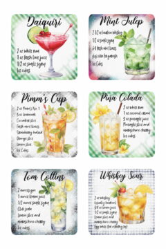 Koktejlové recepty #4 | podložka pod hrnek, sada 6 kusů