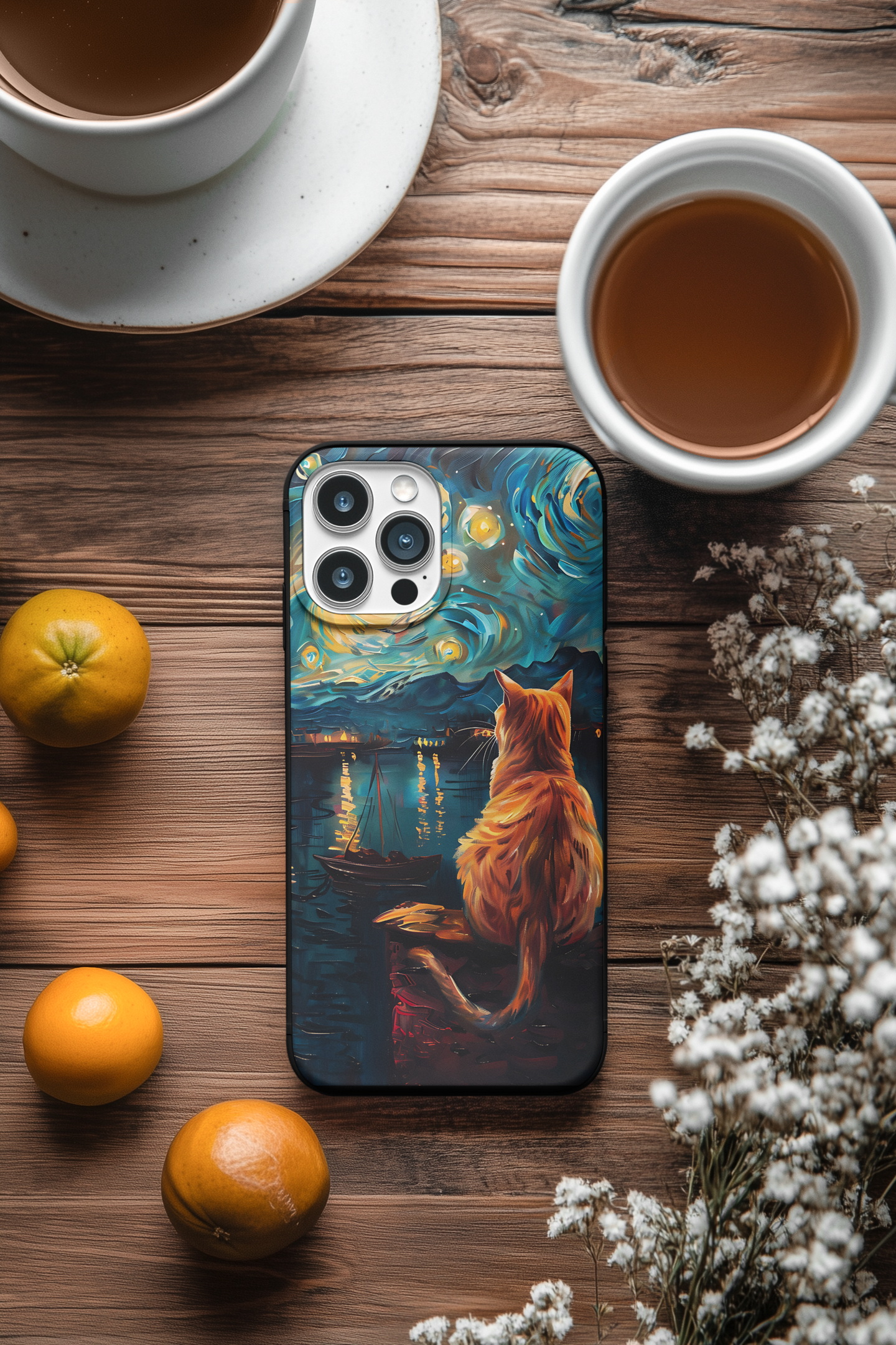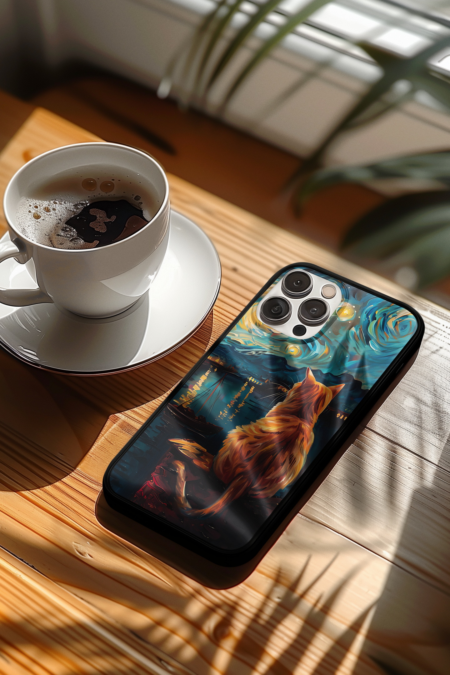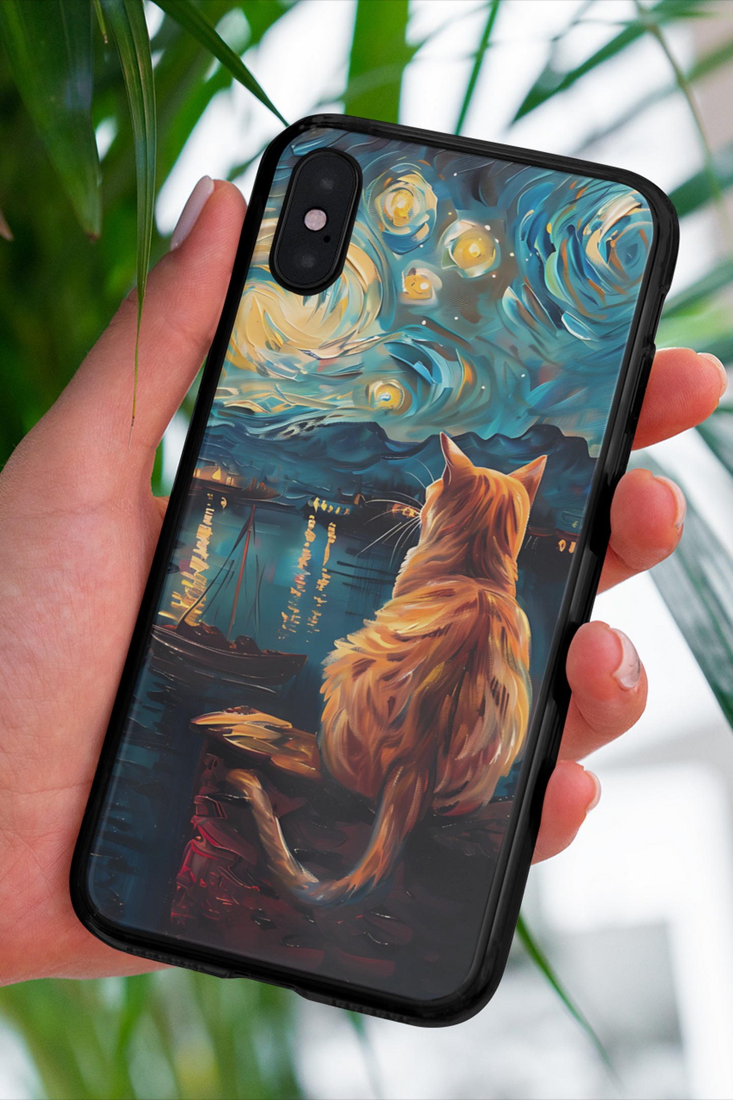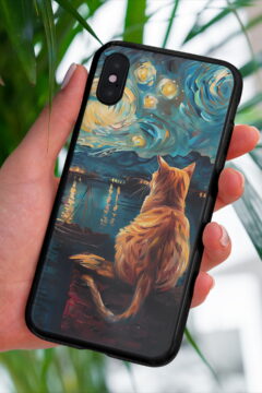 Vynikající ochranný obal pro mobilní telefony Apple iPhone, Samsung Galaxy, Google Pixel a Motorola Edge. Obrázkový motiv zátiší s kočkou imituje malířskou techniku věhlasného holandského malířského mistra Vincenta van Gogha. Kočkomilové si tento obal velice oblíbí.