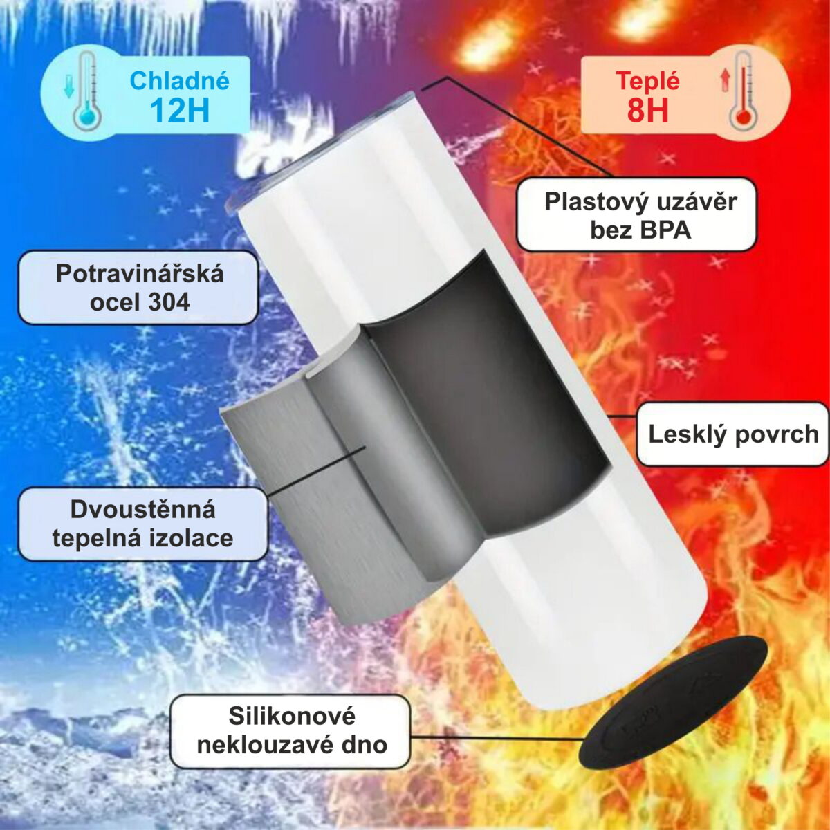 - Udrží nápoj chladný až 12 hodin (v závislosti na okolní teplotě).
