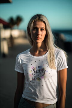 Slušivé dámské tričko z lehké bavlny s vyzývavým motivem.