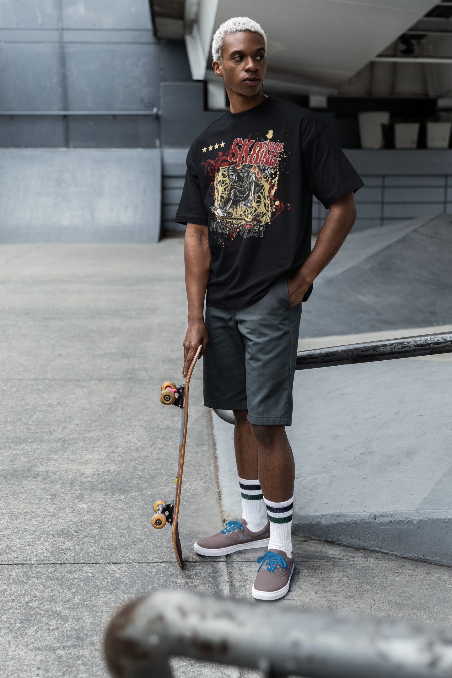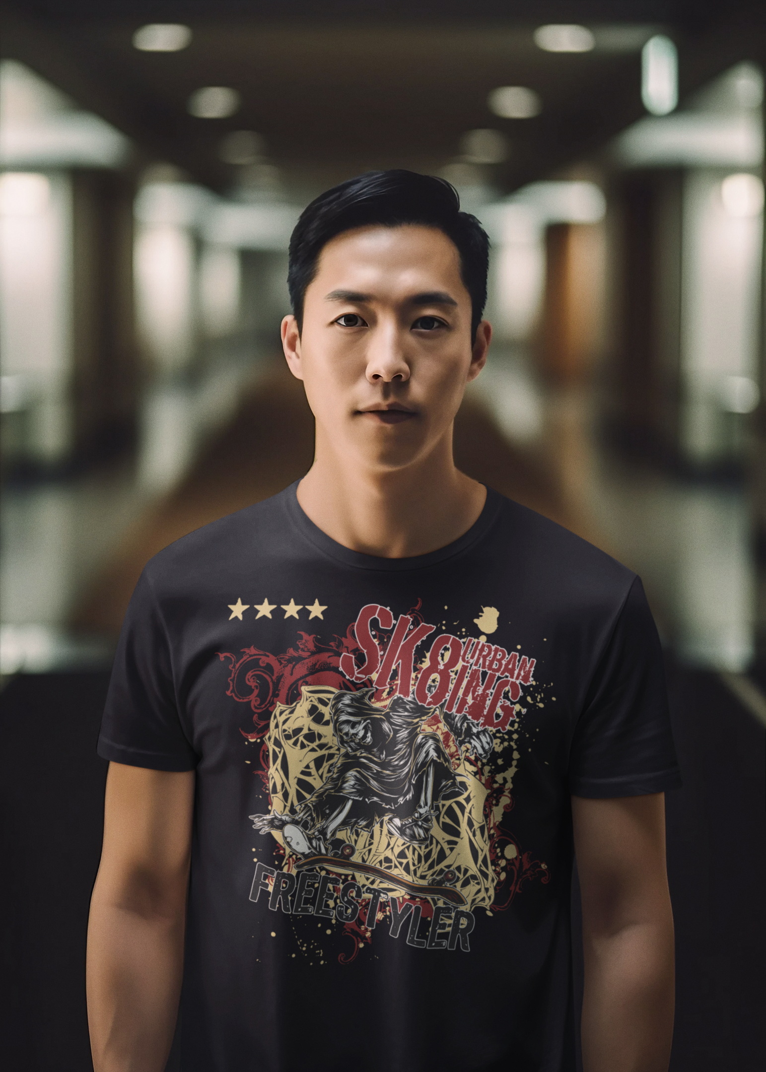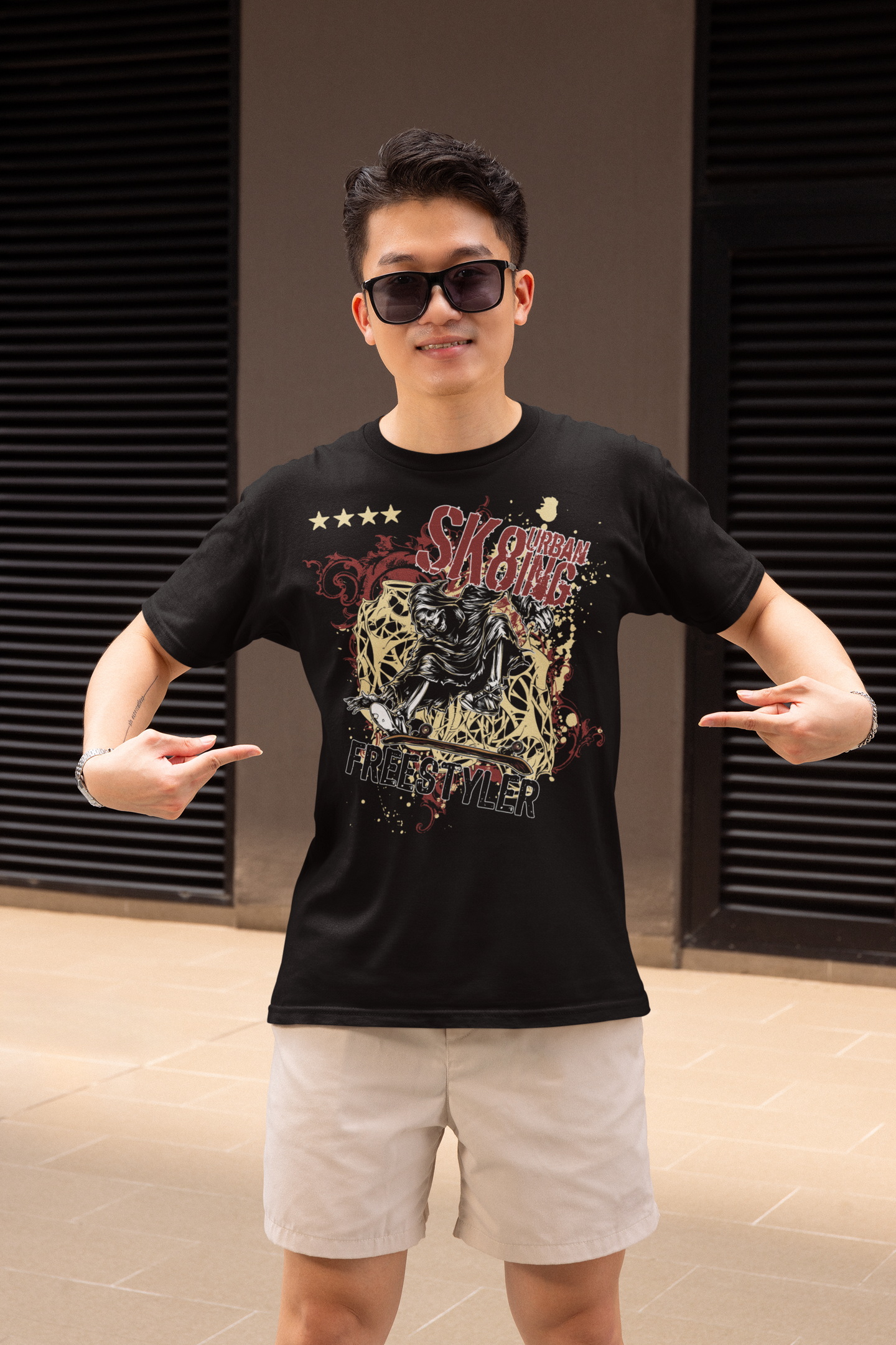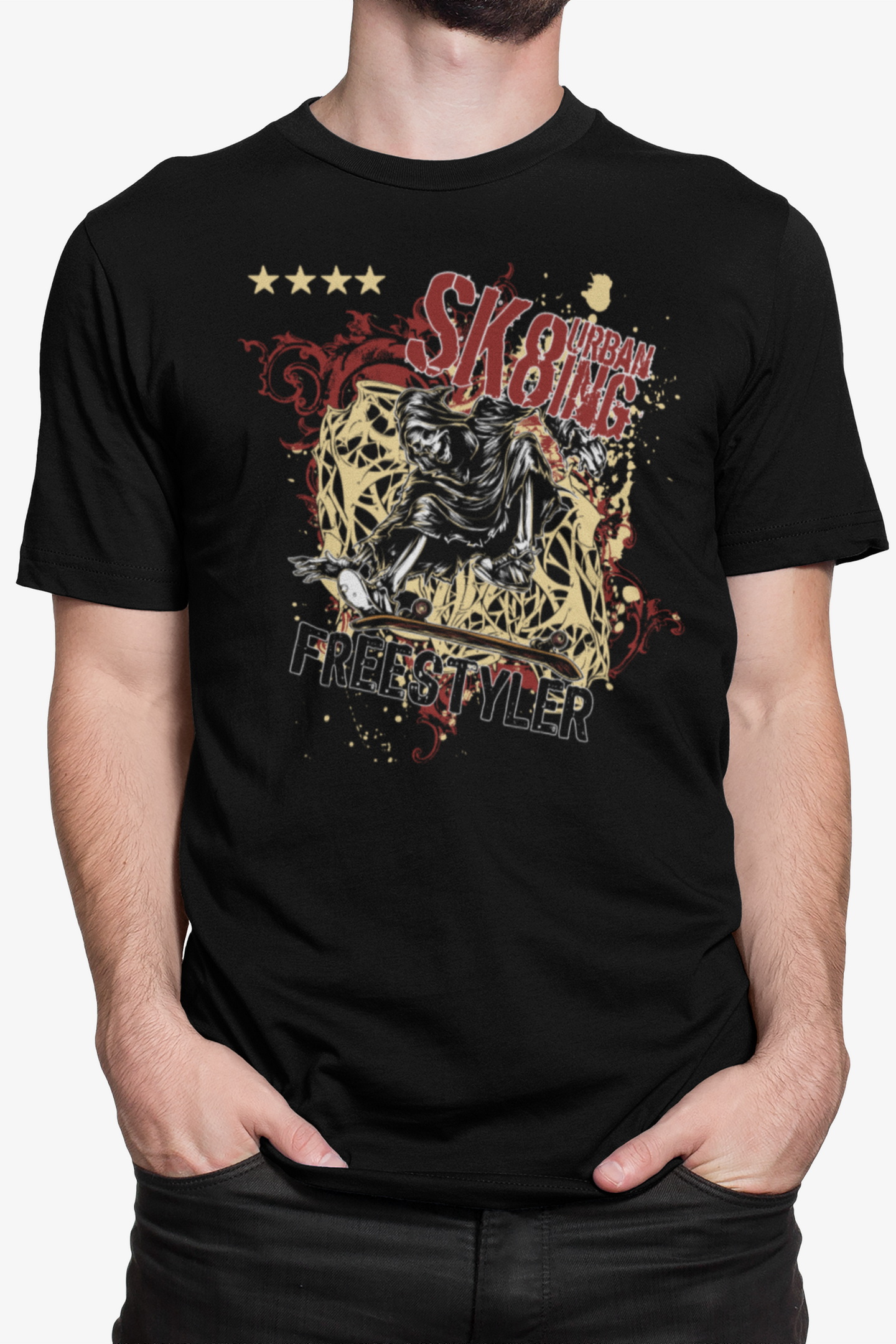 Pánské bavlněné tričko s potiskem, příjemné na nošení.  Ježdění na skateboardu je populární především u mládeže, ale občas se k tomuto sportovnímu vyžití vracejí muži již dospělí. A pro ně je určeno právě toto tričko s motivem skateboardingu.